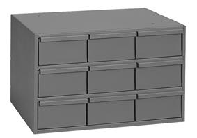 9 drawers (vertical), 11-5/8" deep, steel construction, for small part storage, gray