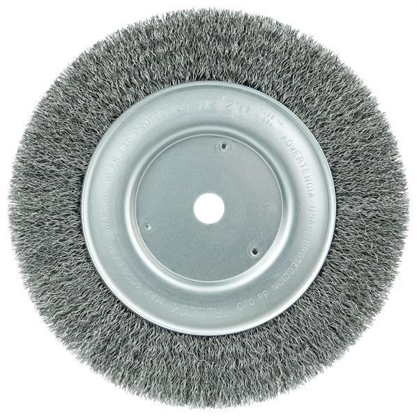 Weiler 8" Maximum Density Crimped Wire Wheel Brush features increased fill density for greater brushing action, longer life and consistent performance in the most demanding applications requiring the flexibility of a crimped wire wheel. 5/8" arbor hole for use on bench/pedestal grinders.