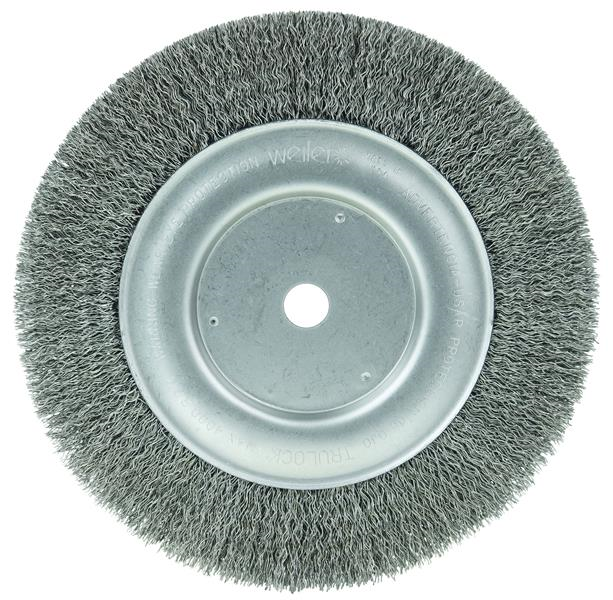 Weiler 8" Maximum Density Crimped Wire Wheel Brush features increased fill density for greater brushing action, longer life and consistent performance in the most demanding applications requiring the flexibility of a crimped wire wheel. 5/8" arbor hole for use on bench/pedestal grinders.
