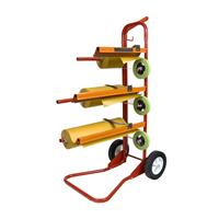 Upright, portable masking paper and tape dispenser that hold three sizes of masking paper.