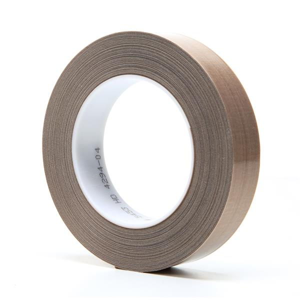 3M PTFE Glass Cloth Tape 5453 is a 8.2 mil brown glass cloth tape impregnated with PTFE (Polytetrafluoroethylene.) It is coated with a pressure sensitive silicone adhesive that bonds easily to provide a slick release surface on rollers, binders, formers on stitchers and other process machinery.