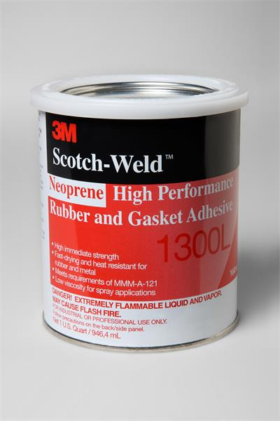3M Neoprene High Performance Rubber And Gasket Adhesive 1300L is a yellow solvent type synthetic rubber based adhesive.