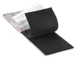 Back To Top- Hook fastener backed with a high performance rubber based adhesive designed for indoor applications requiring medium temperature resistance.