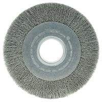 Weiler 8" Wide Face Crimped Wire Wheel provide a flexible brushing action and consistent performance for demanding light-duty cleaning and deburring applications on steel, armored steel, cast iron, ductile iron and tool steel parts. Maximum wire density and aggression and a wider face width to cover more area. 2" arbor hole for use on CNC/milling/automatic machine, bench and pedestal grinders.