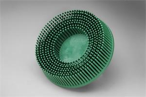 Scotch-Brite™ Roloc™ Bristle Disc, using proprietary ceramic abrasive grain blended with aluminum oxide and molded, flexible bristles, provide more surface contact than wire brushes and retain abrasive properties throughout the life of the disc.