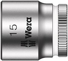 Manual and power tool socket insert (ISO 2725-Part 3) by Wera allows applications both in manual as well as power tools. "Take it easy" Tool Finder with colour coding according to size - for simple and rapid accessing of the required tool. Featuring a good grip to allow easy pick-up even with oily hands. Ball stop groove, for hex head bolts and nuts; chrome vanadium steel, matt chrome-plated.