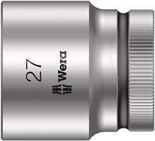 Manual and power tool socket insert (ISO 2725-Part 3) by Wera allows applications both in manual as well as power tools. Featuring a good grip to allow easy pick-up even with oily hands. Ball stop groove, for hex head bolts and nuts; chrome vanadium steel, matt chrome-plated