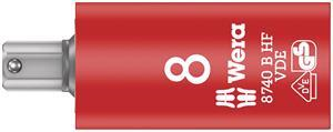 VDE ?" bit socket with holding function for particularly comfortable screwdriving with reduced risk of screw loss when feeding to the component. With increased safety due to yellow insulation core, which becomes visible in case of damage to the outer red VDE insulation layer. Individually tested tool as per IEC 60900 at 10,000 V for safe working at the approved voltage of 1,000 V.