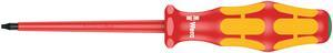 Wera VDE screwdrivers with multi-component Kraftform Plus handle for fast and low-fatigue working: hard gripping zones for high working speeds whereas soft zones ensure high torque transfer. Individually tested in water bath at 10,000 volts for secure work at the permissible voltage of 1,000 volts. "Take it easy" tool finder with colour coding according to profiles and size stamp ? for simple and rapid accessing of the required tool. The hexagonal anti-roll feature prevents any bothersome rolling away at the workplace.