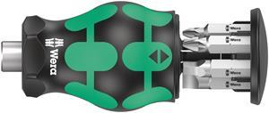 Particularly small bit hand-holder with short bit mounting for hard to reach areas. Includes 6 bits, which are located in a magazine in the handle. With only 65mm total length, the Kraftform Kompakt Stubby is a real mini screwdriving workshop. The strong permanent magnet in the bit mounting ensures secure holding of the bit. The 2-component handle with the practical combination of hard and soft zones allows for a firm grip and precise working. Take it easy tool finder: With size stamping and colour coding by output to find the required bit easily.