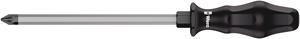 Wera Chiseldriver for fastening, chiselling and loosening seized screws. Single-component Kraftfrom handle for fast and low-fatigue working. A hexagon blade out of high quality bit material that extends right through the blade ensures full transfer of force, even when struck with a hammer. The ductile tempered material prevents the blade from splintering or breaking. Comes with an impact cap for durability and reduced risk of splintering. More torque can be transferred with the help of an open-end or ring spanner applied to the integrated hexagonal bolster. The Wera Black Point tip and a complex hardening process ensure a long service life of the tip, enhanced corrosion protection and an exact fit. The hexagonal anti-roll feature prevents any bothersome rolling away at the workplace.