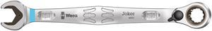 Joker ratcheting combination wrenches with angled ratchet head and switch lever. The metal plate in the jaw provides for the holding function which reduces the risk of losing nuts and bolts. The integrated limit stop can prevent any slipping from the bolt head downwards and enables higher torque to be applied. The exchangeable metal plate in the jaw securely holds nuts and bolts with its extra hard teeth and reduces the risk of slipping. The double-hex geometry delivers a very positive connection with nuts or bolts and again provides for a lower risk of any slipping. The low return angle of only 30? at the jaw end avoids any time-consuming flipping of the wrench when fastening. The reversible ratchet mechanism at the ring end with its fine toothing (80 teeth) ensures great flexibility even in confined spaces. Audibly precise ratchet mechanism. Additionally, the robust two-piece locking element provides for an extreme stability. Comes with a 15? angled ratchet end for secure work even at high torque. The special forged geometry allows for high torque transfer and high flexural rigidity. Manufactured out of high-performance chrome-molybdenum steel with a nickel-chromium coating for high corrosion protection. With "Take it easy" tool finder: colour coding according to size.