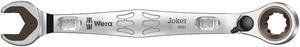 Joker ratcheting combination wrenches with angled ratchet head and switch lever. The metal plate in the jaw provides for the holding function which reduces the risk of losing nuts and bolts. The integrated limit stop can prevent any slipping from the bolt head downwards and enables higher torque to be applied. The exchangeable metal plate in the jaw securely holds nuts and bolts with its extra hard teeth and reduces the risk of slipping. The double-hex geometry delivers a very positive connection with nuts or bolts and again provides for a lower risk of any slipping. The low return angle of only 30? at the jaw end avoids any time-consuming flipping of the wrench when fastening. The reversible ratchet mechanism at the ring end with its fine toothing (80 teeth) ensures great flexibility even in confined spaces. Audibly precise ratchet mechanism. Additionally, the robust two-piece locking element provides for an extreme stability. Comes with a 15? angled ratchet end for secure work even at high torque. The special forged geometry allows for high torque transfer and high flexural rigidity. Manufactured out of high-performance chrome-molybdenum steel with a nickel-chromium coating for high corrosion protection. With "Take it easy" tool finder: colour coding according to size.