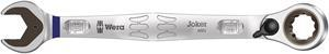 Joker ratcheting combination wrenches with angled ratchet head and switch lever. The metal plate in the jaw provides for the holding function which reduces the risk of losing nuts and bolts. The integrated limit stop can prevent any slipping from the bolt head downwards and enables higher torque to be applied. The exchangeable metal plate in the jaw securely holds nuts and bolts with its extra hard teeth and reduces the risk of slipping. The double-hex geometry delivers a very positive connection with nuts or bolts and again provides for a lower risk of any slipping. The low return angle of only 30? at the jaw end avoids any time-consuming flipping of the wrench when fastening. The reversible ratchet mechanism at the ring end with its fine toothing (80 teeth) ensures great flexibility even in confined spaces. Audibly precise ratchet mechanism. Additionally, the robust two-piece locking element provides for an extreme stability. Comes with a 15? angled ratchet end for secure work even at high torque. The special forged geometry allows for high torque transfer and high flexural rigidity. Manufactured out of high-performance chrome-molybdenum steel with a nickel-chromium coating for high corrosion protection. With "Take it easy" tool finder: colour coding according to size.