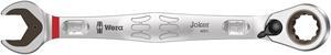 Joker ratcheting combination wrenches with angled ratchet head and switch lever. The metal plate in the jaw provides for the holding function which reduces the risk of losing nuts and bolts. The integrated limit stop can prevent any slipping from the bolt head downwards and enables higher torque to be applied. The exchangeable metal plate in the jaw securely holds nuts and bolts with its extra hard teeth and reduces the risk of slipping. The double-hex geometry delivers a very positive connection with nuts or bolts and again provides for a lower risk of any slipping. The low return angle of only 30? at the jaw end avoids any time-consuming flipping of the wrench when fastening. The reversible ratchet mechanism at the ring end with its fine toothing (80 teeth) ensures great flexibility even in confined spaces. Audibly precise ratchet mechanism. Additionally, the robust two-piece locking element provides for an extreme stability. Comes with a 15? angled ratchet end for secure work even at high torque. The special forged geometry allows for high torque transfer and high flexural rigidity. Manufactured out of high-performance chrome-molybdenum steel with a nickel-chromium coating for high corrosion protection. With "Take it easy" tool finder: colour coding according to size.