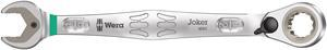 Joker ratcheting combination wrenches with angled ratchet head and switch lever. The metal plate in the jaw provides for the holding function which reduces the risk of losing nuts and bolts. The integrated limit stop can prevent any slipping from the bolt head downwards and enables higher torque to be applied. The exchangeable metal plate in the jaw securely holds nuts and bolts with its extra hard teeth and reduces the risk of slipping. The double-hex geometry delivers a very positive connection with nuts or bolts and again provides for a lower risk of any slipping. The low return angle of only 30? at the jaw end avoids any time-consuming flipping of the wrench when fastening. The reversible ratchet mechanism at the ring end with its fine toothing (80 teeth) ensures great flexibility even in confined spaces. Audibly precise ratchet mechanism. Additionally, the robust two-piece locking element provides for an extreme stability. Comes with a 15? angled ratchet end for secure work even at high torque. The special forged geometry allows for high torque transfer and high flexural rigidity. Manufactured out of high-performance chrome-molybdenum steel with a nickel-chromium coating for high corrosion protection. With "Take it easy" tool finder: colour coding according to size.