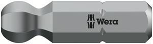 Tough viscous Wera bits for hexagon socket screws and universal use. The ballpoint drive profile means that it is possible to swivel the tool axis away from the screwdriving axis, thus enabling "round the corner" screwdriving. 1/4" hexagon, suitable for holders as per DIN ISO 1173-D 6.3.
