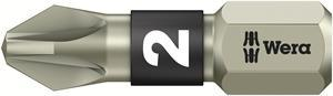 High quality bits out of stainless steel for Pozidriv* screws. Wera stainless are made out of stainless steel which prevents the formation of unsightly extraneous rust. Come with Torsion zone: Torsion bits take-up torque peaks and absorb them in the Torsion zone. This prevents premature wear and extends the service life of the bit. 1/4" hexagon, suitable for holders as per DIN ISO 1173-D 6.3. * Pozidriv = registered trademark of European Industrial Service Ltd.