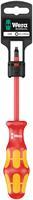 Wera VDE screwdrivers with multi-component Kraftform Plus handle for fast and low-fatigue working: hard gripping zones for high working speeds whereas soft zones ensure high torque transfer. Individually tested in water bath at 10,000 volts for secure work at the permissible voltage of 1,000 volts. The hexagonal anti-roll feature prevents any bothersome rolling away at the workplace.
