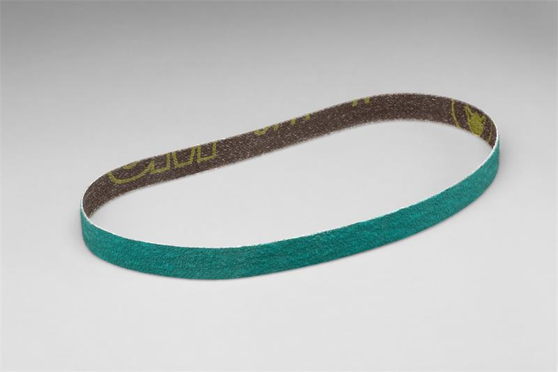 3M™ Cloth Belt 577F features alumina zirconia abrasive grain for increased cutting efficiency over aluminum oxide belts, and is backed with a heavy, water-resistant polyester backing that stands up to high-pressure applications and edge work. The durable backing ensures long life and supports both wet and dry operations.