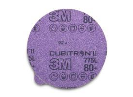3M™ Cubitron™ II Stikit™ Film Disc 775L features 3M Precision Shaped Ceramic Grain, a revolutionary advancement in abrasive technology. The triangular shaped ceramic mineral is designed to slice through the substrate, rather than gouging or “plowing” like conventional abrasives, resulting in a disc that cuts up to 2x as fast and lasts up to 6x as long as conventional abrasives.