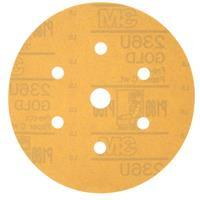 The 3M™ Hookit™ Gold Disc 236U is precision-coated for long life during auto body sanding projects requiring moderately coarse grit abrasives. Open coat aluminum oxide abrasive and C-weight paper backing provide durability and a long-lasting cut for rough feather-edging or shaping plastic filler and putty. Load-resistant coating and available 6-hole pattern provide superior dust resistance.