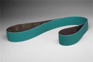 3M™ Cloth Belt 577F features alumina zirconia abrasive grain for increased cutting efficiency over aluminum oxide belts, and is backed with a heavy, water-resistant polyester backing that stands up to high-pressure applications and edge work. The durable backing ensures long life and supports both wet and dry operations.