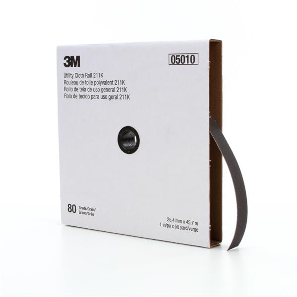 3M™ Utility Cloth Roll 211K provides a light-weight cloth sandpaper used for hand sanding in many different applications. Constructed with aluminum oxide abrasive, these rolls come in a range of grades for common applications such as deburring, blending and repairing metal finishes, rust or other contaminant removal, and surface preparation for paints and coatings.