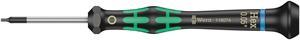High quality Wera Micro screwdriver for precision mechanical jobs. Rapid twisting results from fixing the hand on the head and using the fast-turning zone just below. This makes time-consuming grip adjustments unnecessary. Power zones with integrated soft sections ensure the transfer of high loosening and tightening torque; a precision zone for the right rotation angle during fine adjustment work. The Black Point tip offers optimised corrosion protection and an exact fit. "Take it easy" tool finder with colour coding according to profiles and size stamp ? for simple and rapid accessing of the required tool.
