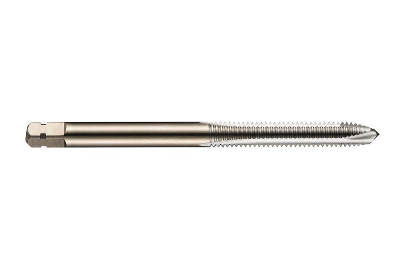 Spiral point tap with chamfer form B with a 3.5-5xP plug lead, for ISO-Metric thread M10 with 1.50 mm pitch and 6H class of fit, dimensions according to ANSI standard with 0.3810" shank and 0.2860" square drive, powder metallurgical HSS-E with bright finish for 2.5xD through hole threading in free machining and plain carbon steel and wrought or cast aluminium and copper or copper alloys