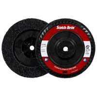 Scotch-Brite™ Clean and Strip XT Pro Disc features silicon carbide abrasive mineral incorporated into an open nylon web. It effectively removes rust, paint, mill scale, coatings and adhesives from surfaces without significantly altering the base material. The high-strength fibers are highly conformable, resist chunking and loading, and perform well on the edges of a workpiece.