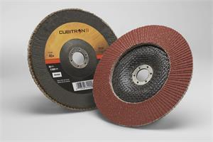 3M™ Cubitron™ ll Flap Disc 969F is the ideal choice for medium to high-pressure applications like beveling, weld removal and edge deburring. By combining a durable polyester backing with 3M Precision-Shaped Grain, this long-lasting flap disc delivers a consistent, fast cut on a variety of metals while providing a smooth finish.