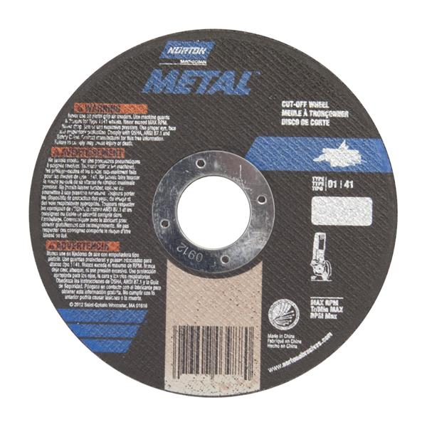 The Norton right angle cut-off wheel line consists of Type 01 straight and Type 27 depressed center cut-off wheels from 1-1/2 In. to 7 In. diameters. These wheels come in ultra thin .035 In. for quick burn/burr free cutting to .090 In. for more durable applications. All are reinforced for the demanding nature of cut-off with right angle grinders equipped with the proper flanges.