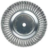 Weiler 10" Standard Twist Knot Wire Wheel Brush provides a heavy-duty brushing action with some flexibility for demanding deburring cleaning and surface preparation applications on somewhat irregular surfaces. Featuring Weiler's individual knot hole construction, these radial brushes are available in heat-treated steel, type 302 stainless steel and bronze wire for use in a wide variety of applications. 3/4" arbor hole for use on bench/pedestal grinder, die grinder, right angle die grinder and straight grinders.