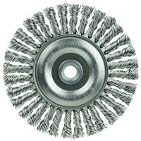 Weiler 4" Mini Roughneck Stringer Bead Weld Cleaning Brush is suitable for cleaning root and hot passes and reaching into corners. 1/2"-3/8" arbor hole for use on right angle grinders.