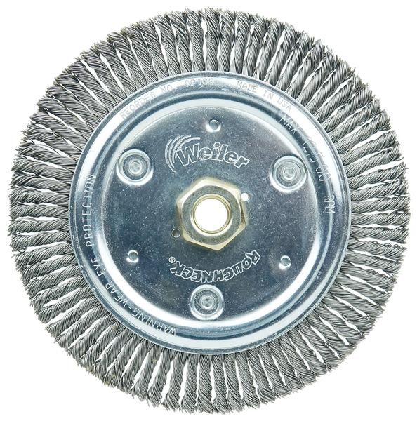 Weiler 7" Roughneck Sr. Root Pass Weld Cleaning Brush is suitable for cleaning root and hot passes and reaching into corners. 5/8"-11 nut for use on right angle grinders.