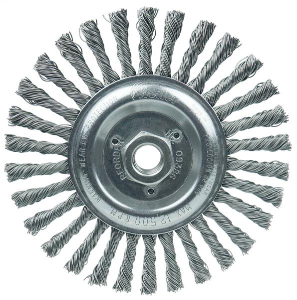 Weiler 6" Roughneck Jr. Filler Pass Weld Cleaning Brush is suitable for cleaning root and hot passes and reaching into corners. 5/8"-11 nut for use on right angle grinders.