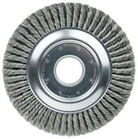 Weiler 10" Standard Twist Knot Wire Wheel Brush provides a heavy-duty brushing action with some flexibility for demanding deburring cleaning and surface preparation applications on somewhat irregular surfaces. Featuring Weiler's individual knot hole construction, these radial brushes are available in heat-treated steel, type 302 stainless steel and bronze wire for use in a wide variety of applications. 2" arbor hole for use on bench/pedestal grinder, die grinder, right angle die grinder and straight grinders.
