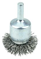 Weiler 1-1/2" Circular Flared Crimped Wire End Brush features crimped wire fill which has been "pre-flared" to match the working angle of the brush at operating speed and suited for addressing broad and slightly contoured surfaces. 1/4" stem diameter for use on die grinder and right angle die grinders.