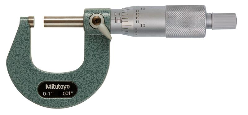 0-1 Inch, .001 Inch Mechanical Outside Micrometer, Hammertone Baked Enamel, Ratchet Stop, Angle Frame