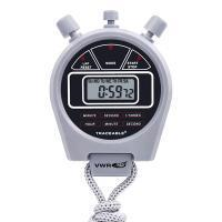 VWR 3-Button Stopwatch Times to 24 hours. Resolution 1/100 second first 30 minutes 1 second thereafter. Features start/stop time-out cumulative split and continuous roll-over timing. Displays time and date. 5.4cm diameter. NIST traceable. Includes lanyard and battery