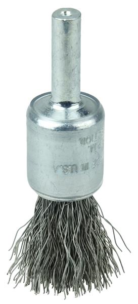 Weiler 1/2" Coated Cup Crimped Wire End Brush features a solid end construction and very flexible brushing action. ideal for more demanding light-duty cleaning applications in corners and hard-to-reach areas. 1/4" stem diameter for use on die grinder and right angle die grinders.