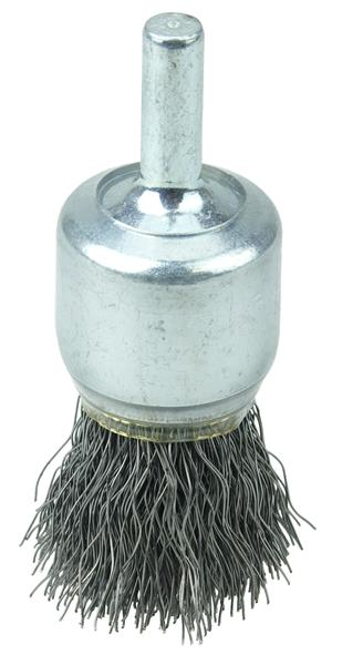 Weiler 3/4" Coated Cup Crimped Wire End Brush features a solid end construction and very flexible brushing action. ideal for more demanding light-duty cleaning applications in corners and hard-to-reach areas. 1/4" stem diameter for use on die grinder and right angle die grinders.