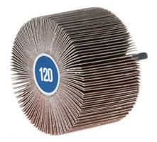 Abrasive flaps with mulitple slits to increase flexibility. Less aggressive than normal wheels, but conform well to irregular shapes, profiles and small openings. Excellent choice for finishing woodwork contours.