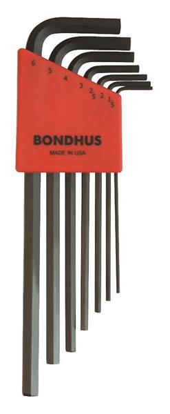 Hex Tip Hex Key L-wrench Set of 7 Pieces with ProGuard™ Finish. Long Arm. Packaged in Bondhex Color Coded Case. Set Includes: 1.5mm, 2mm, 2.5mm, 3mm, 4mm, 5mm & 6mm