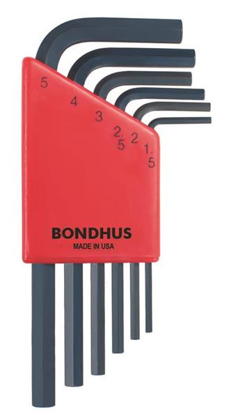 Hex Tip Hex Key L-wrench Set of 6 Pieces with ProGuard™ Finish. Short Arm. Includes: 1.5mm, 2mm, 2.5mm, 3mm, 4mm & 5mm