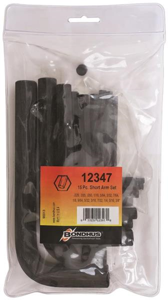 Hex Tip Hex Key L-wrench Set of 15 Pieces with ProGuard™ Finish. Short Arm. In Pouch. Includes: .028", .035", .050", 1/16", 5/64", 3/32", 7/64", 1/8", 9/64", 5/32", 3/16", 7/32", 1/4", 5/16" & 3/8"