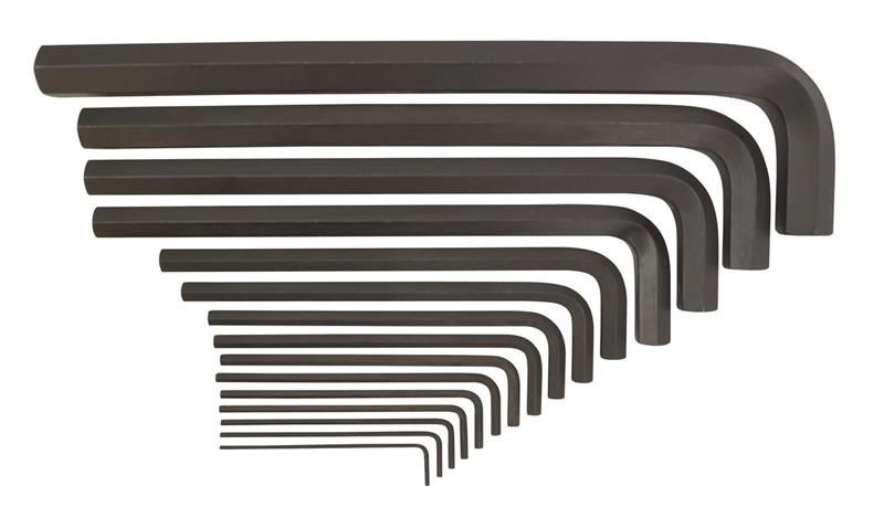 Hex Tip Hex Key L-wrench Set of 15 Pieces with ProGuard™ Finish. Long Arm. In Pouch. Includes: 5/64", 3/32", 7/64", 1/8", 9/64", 5/32", 3/16", 7/32", 1/4", 5/16", 3/8", 1/2", 9/16", 5/8", & 3/4"