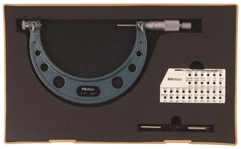 4-5 Inch Measuring Range, 0.001 Graduation, Ratchet Thimble, High Speed Steel Face, Interchangeable Anvil Thread Micrometer