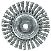 Weiler 4" Mini Roughneck Stringer Bead Weld Cleaning Brush is suitable for cleaning root and hot passes and reaching into corners. 1/2"13 nut for use on right angle grinders.